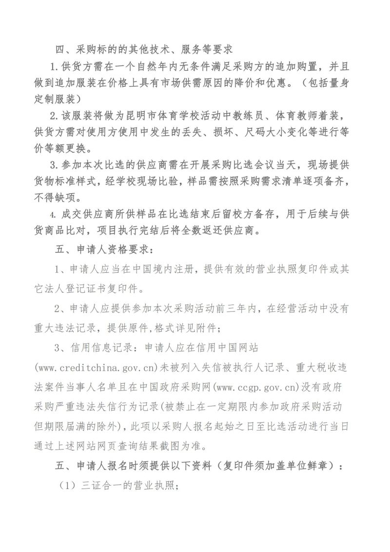 昆明市体育学校关于2023年昆明市体育学校教练员、体育教师服装采购公告