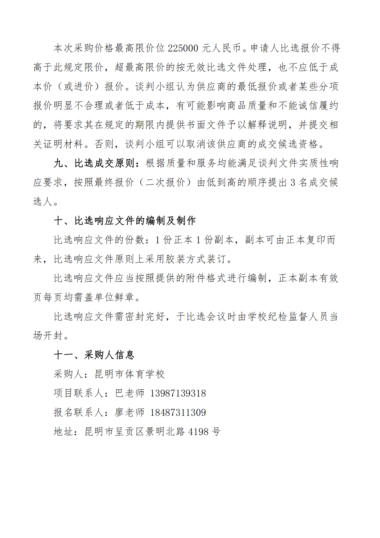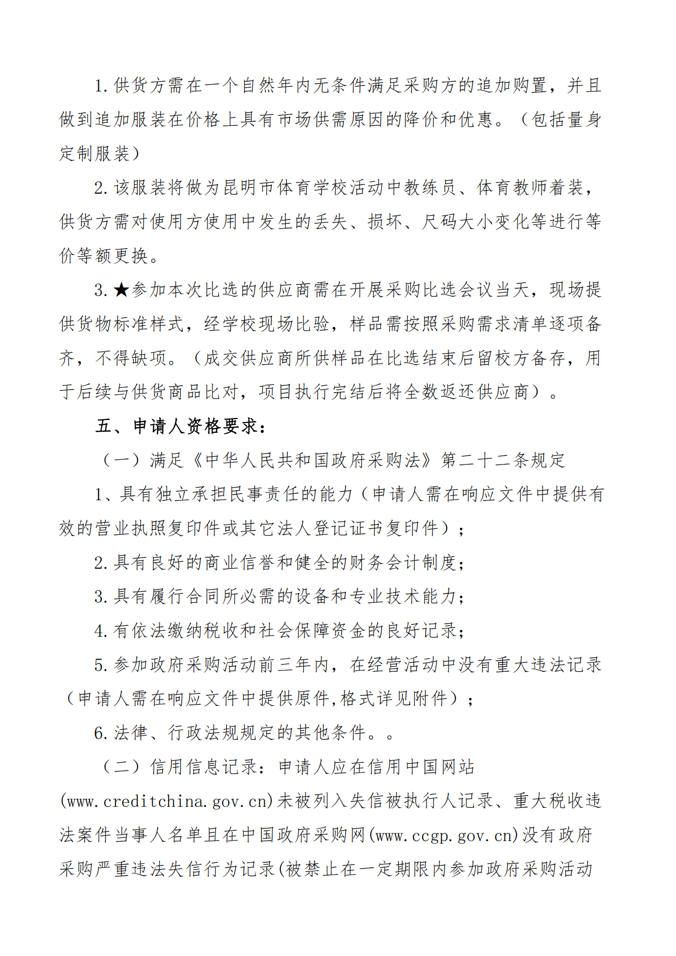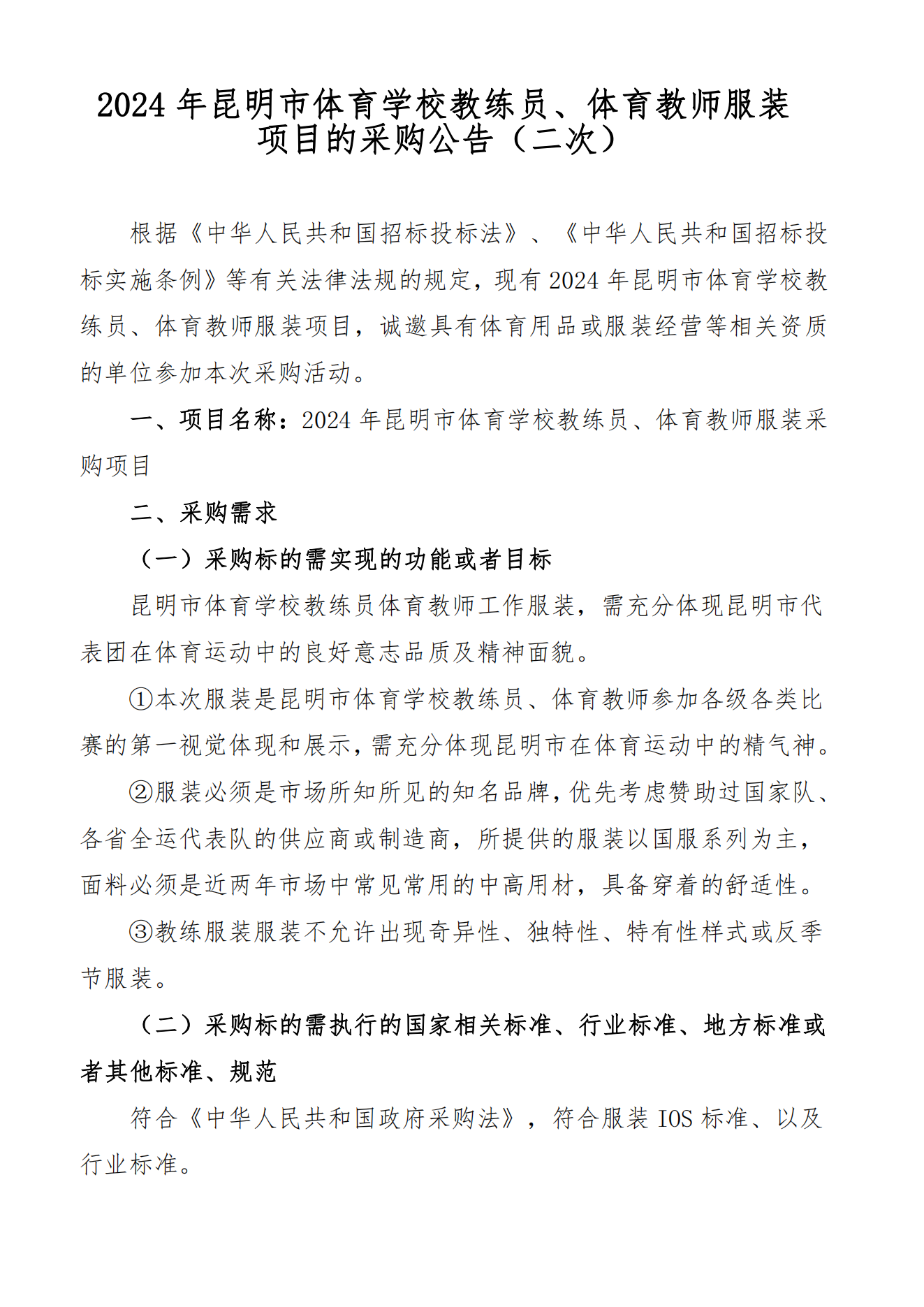 2024年昆明市体育学校教练员、体育教师服装项目的采购公告(二次)